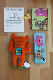 Weeks after receiving this very exciting package, I have actually got my act together and taken a picture of the goodies Calistro sent me. This means that I can officially declare my part in Pay it Forward open, and anybody who would like a surprise parcel of excitingness should send me an email (eleanor dot steele at gmail dot com). The first three people who provide their address will be the lucky recipients of something suitably fun!